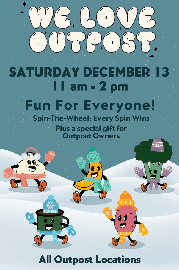The above information will be used only by Outpost Natural Foods for the express purpose of sending an e-newsletter. Outpost shopper information is never shared with other organizations or businesses.