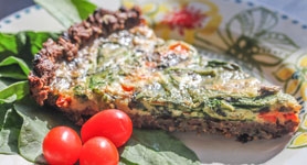 The Walnut Burger crust will work with any quiche recipe so feel free to add your favorite ingredients. It freezes well and can be warmed in the oven after thawing.