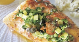 Greek Fish Fillets with Cucumber-Caper Salsa