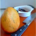 3. Heat peanut oil in a large skillet. When hot, add pork and cook, stirring one minute. Add bell pepper and cook 1 minute more. Add garlic and ginger and cook 1 minute longer. Add reserved liquid and stir until mixture just begins to thicken. Add mango and stir gently. Add more water if mixture thickens too quickly. When mango is heated through but still holds its shape, remove from heat and serve over basmati rice with naan or other favorite flat bread.