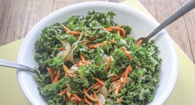 3. Massage the kale, rubbing and squeezing the leaves so that the dressing tenderizes and wilts the shreds.